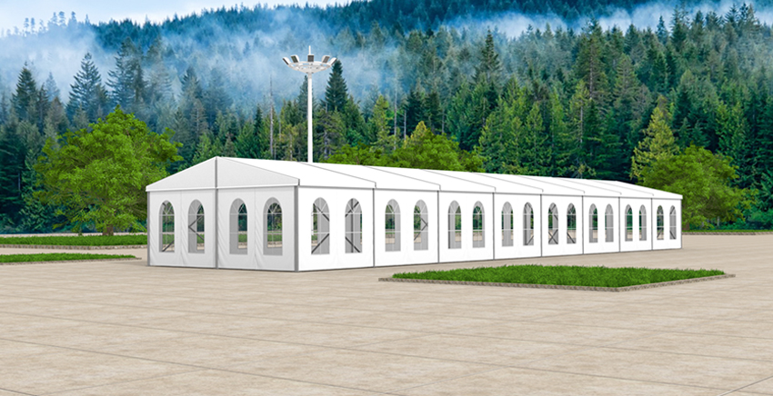 屋脊篷房系列品種繁多,提供從6米到50米的多種跨度。屋脊篷房采用模塊化設計,篷房長度可按3米或者5米的倍數延長。屋脊篷房采用高強度鋁合金型材(6061-T6)作為主框架,外圍采用PVC刀刮涂層布做圍擋。此外,屋脊篷房高適應性的特點,可以讓它融入各種建筑特色,也可以與同類產品,如:如尖頂篷房、多邊型篷房等組合使用。