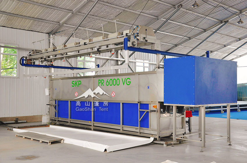 5000平方的恒溫制布車間,先進履帶式移動高頻熱合機器與數控裁剪機器,保證篷布加工的平整度與美觀度,滿足客戶的需求,提升品質與精度,受到客戶好評,加工能力的提高,縮短了交貨周期。