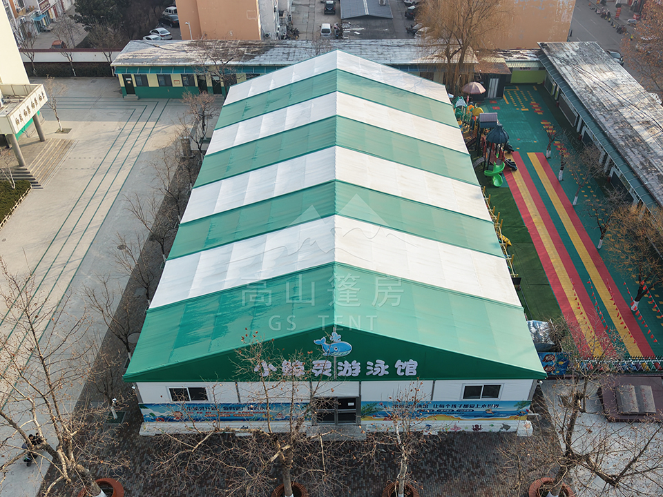 更值得一提的是其綠色環保與高性價比優勢。施工過程無揚塵、無建筑垃圾,鋁合金框架與篷布材料可回收利用,踐行可持續發展理念。相較于傳統場館高昂的建設與維護成本,篷房架構大幅降低投入,讓優質游泳資源以更親民的姿態惠及大眾。