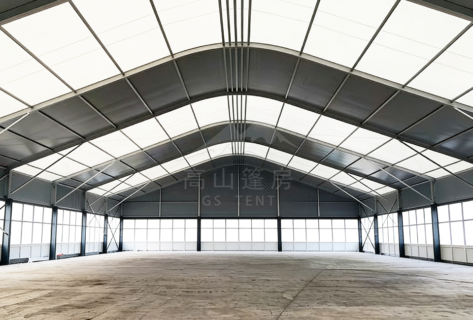 其內部采用無柱大跨度設計,最大跨度可達60米以上,超大空間利用率,視野開闊無遮擋。長度可按需求無限延伸,更可根據具體用途靈活劃分內部功能區。這種與生俱來的靈活性,使其能夠輕松適配從展覽展會、倉儲物流到體育賽事、臨時車間等幾乎所有的臨時或半永久性空間應用。