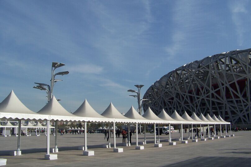 高山篷房屬于裝配式移動建筑,目前無需傳統鋼結構以及鋼筋混凝土結構密閉廠房的繁瑣審批,手續簡易快捷;篷房采用模塊化生產,由高強度鋁合金與篷布組合而成,搭建速度快,另外其對地面要求低,無需進行地基處理,大大縮短施工周期。