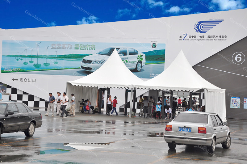 臨時售票廳/接待處:臨時室外活動使用時間短,高山尖頂篷房可靈活拆搭,功能性強,廣泛應用于車站、會議、演唱會、體育賽事等大中小型活動。